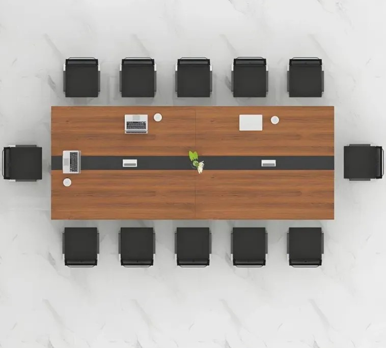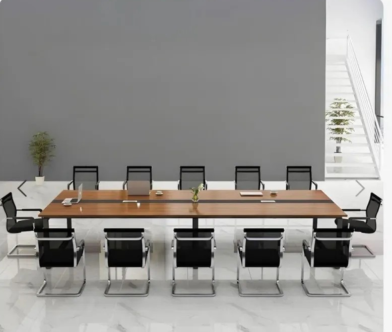 Built with a sturdy engineered wood tabletop and supported by robust metal or wooden legs, the 2400mm conference table is engineered for long-term use. Furthermore, the surface is scratch-resistant and easy to clean, maintaining its sleek appearance even in high-traffic office environments.
