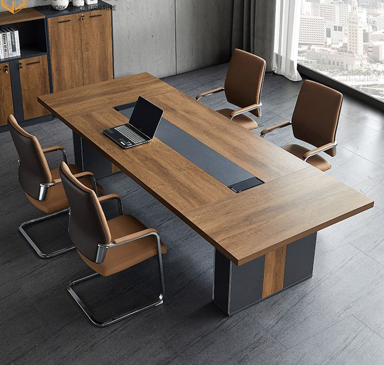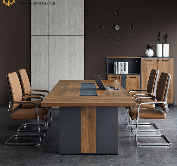 Built with strength in mind, the table features a thick, engineered wood top finished in a scratch-resistant, stain-resistant laminate. The reinforced metal or wooden base (depending on model) ensures maximum stability and long-term performance. As a result, this table is perfectly suited for daily use in high-traffic executive and meeting spaces.