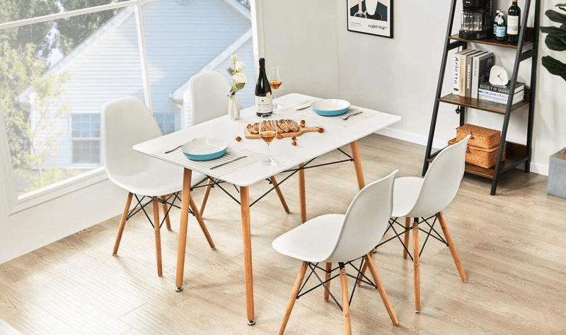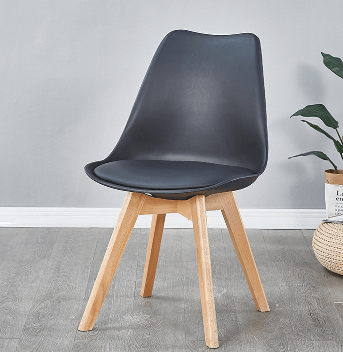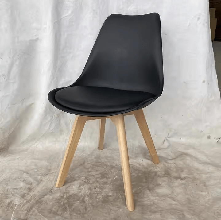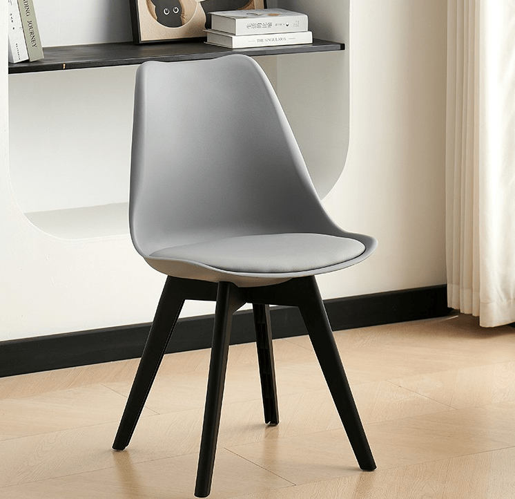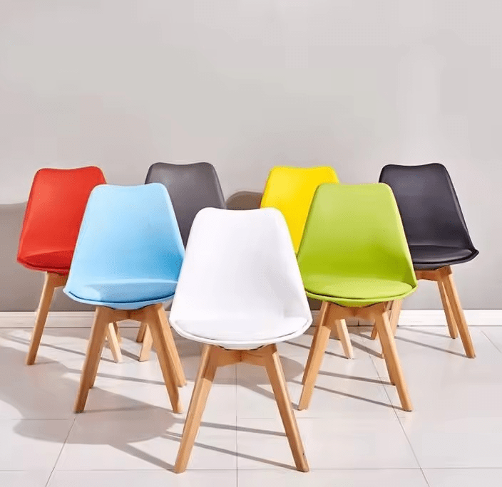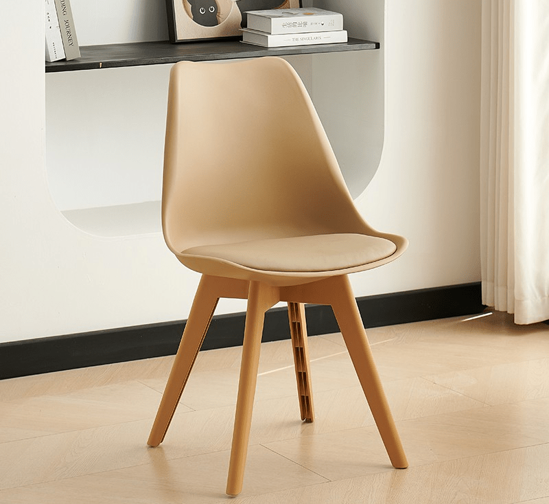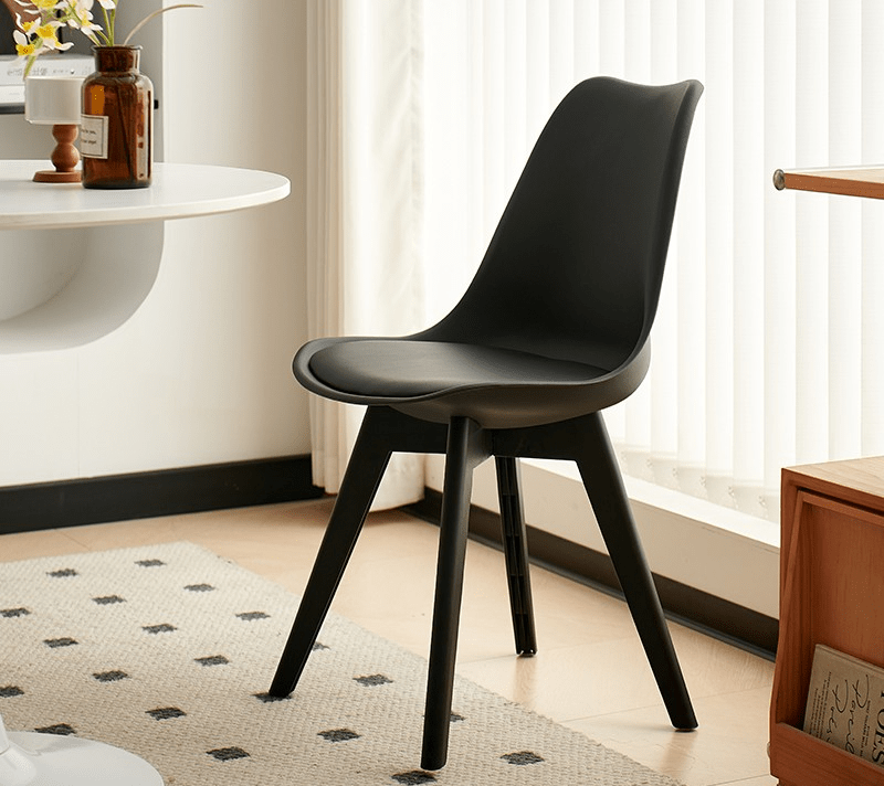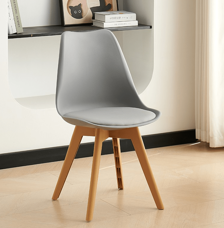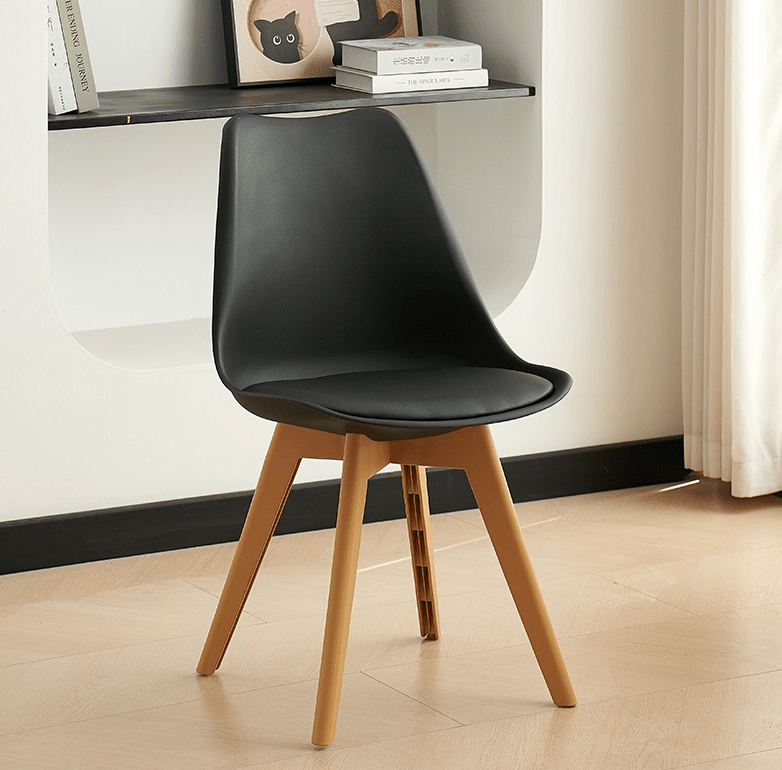 The chair includes a gently curved seat and backrest. These provide excellent support, ensuring comfort during family meals, casual gatherings, or working from your dining table. In addition, its lightweight yet sturdy construction makes it easy to move without compromising stability. The chair is made with premium materials. The molded plastic or fiberglass seat combines perfectly with solid wood or metal legs, offering long-lasting durability and a polished look.