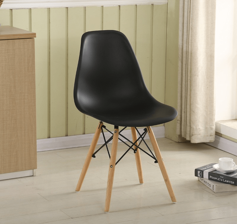 Add a touch of mid-century modern style to your dining space with the Modern Eames Plastic Dining Chair. Featuring a smooth plastic seat and durable wooden legs, this chair combines comfort and elegance in one iconic design. Its ergonomic shape provides a comfortable seating experience, while the minimalist design effortlessly complements a variety of dining room styles, from contemporary to classic. Perfect for both residential and commercial spaces, the Modern Eames Plastic Dining Chair brings timeless appeal, quality, and versatility to any dining or living area. -
