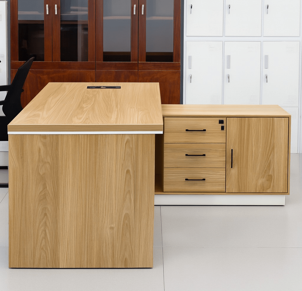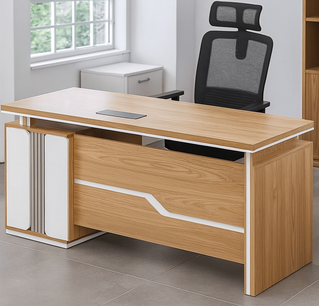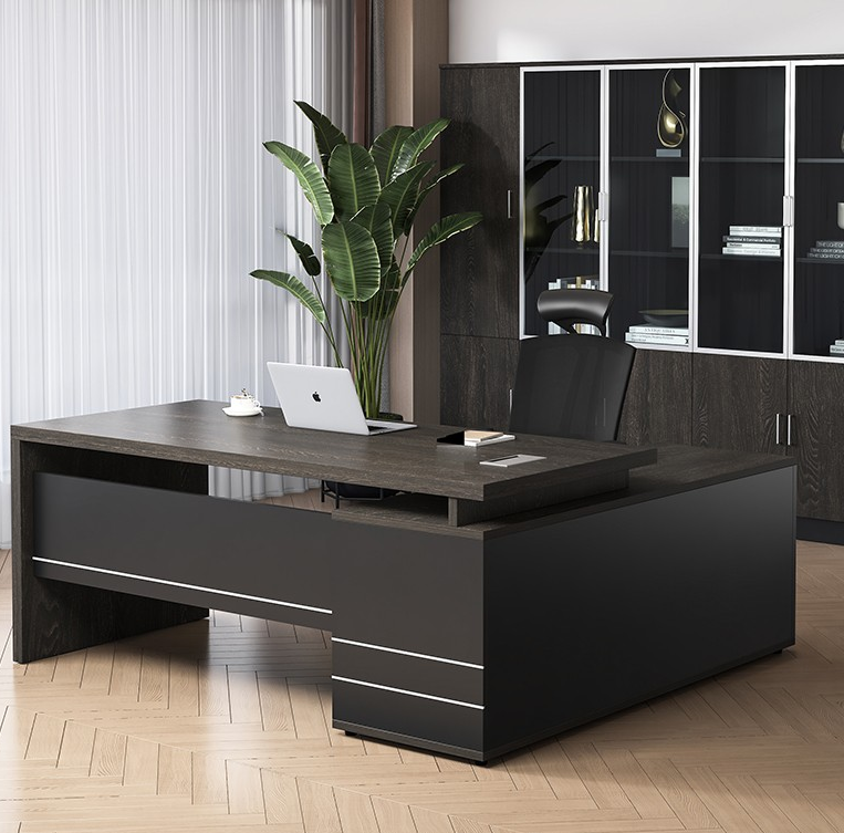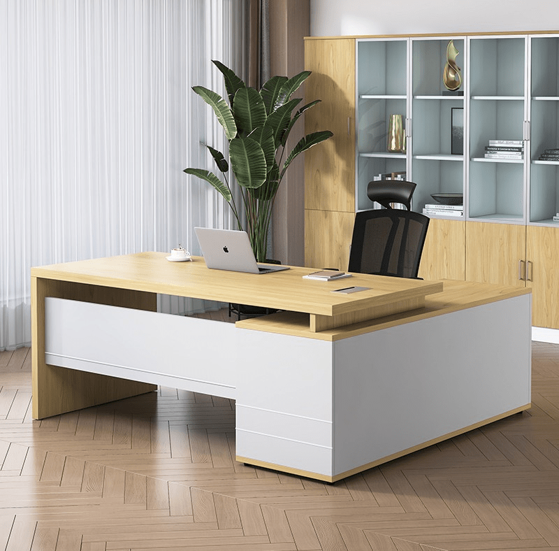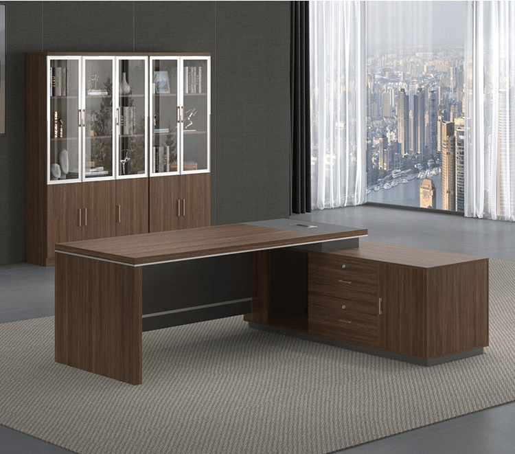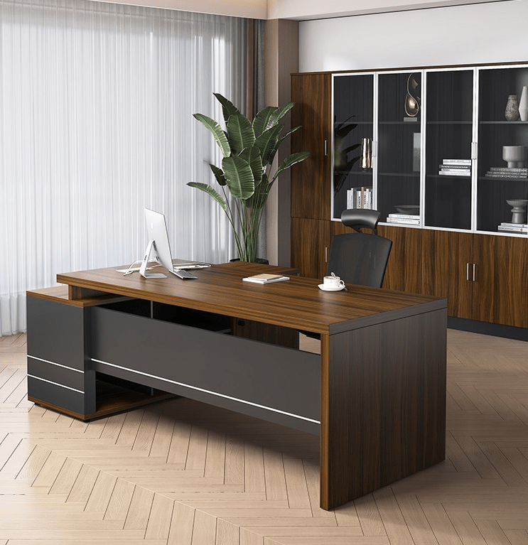 Built with high-quality materials, this desk is designed to last. Its sturdy construction ensures stability, while the smooth finish enhances its professional appearance. Resistant to scratches and daily wear, it maintains its elegance over time, making it a wise investment for any office environment. The desk’s clean lines and modern aesthetic complement any office décor, from classic to contemporary.Enhanced Organization and Storage Options