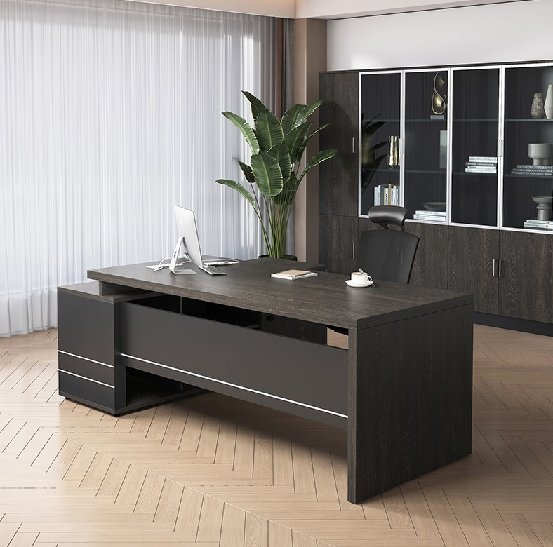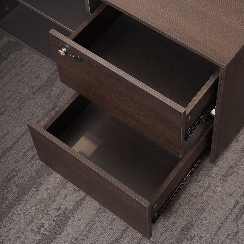 Keep your workspace clutter-free with integrated storage solutions. Drawers and compartments provide convenient storage for stationery, files, and personal items, ensuring everything stays neatly organized. This executive desk promotes a productive and efficient workflow, allowing you to focus on what truly matters—your work.The Ideal Choice for Professionals