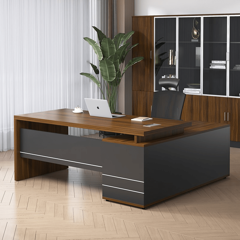 Built with a reinforced steel frame and a durable, scratch-resistant surface, this L-shaped executive desk is designed for long-term use. It resists stains, heat, and everyday wear, ensuring your workspace maintains its sleek and polished look. Integrated cable-management features keep wires hidden and organized, helping you maintain a clutter-free environment that boosts productivity and efficiency.