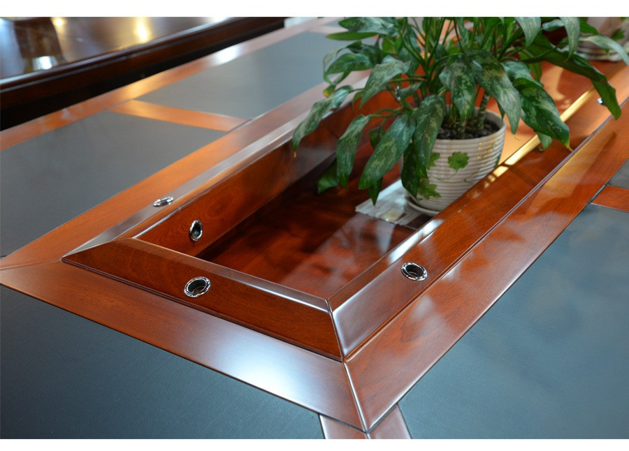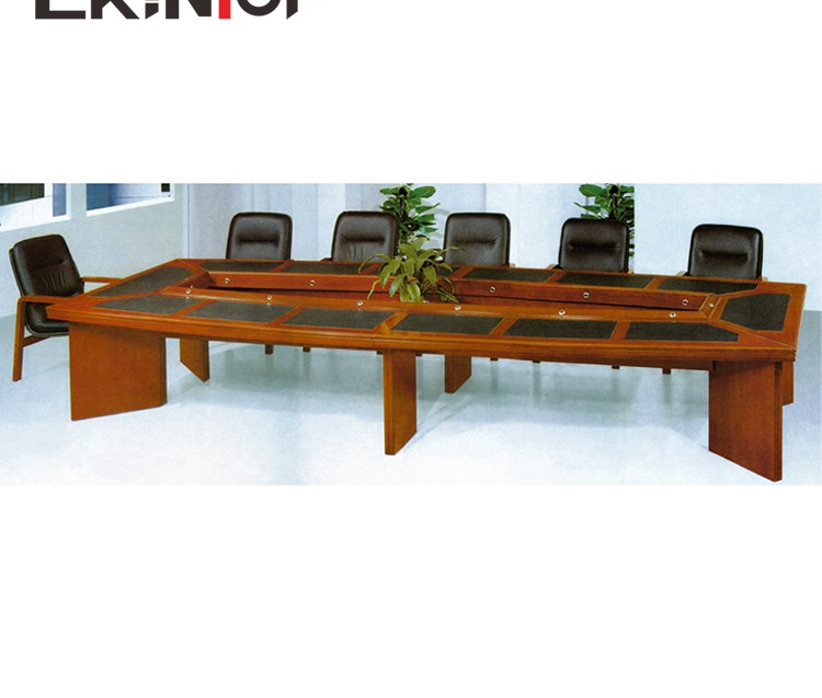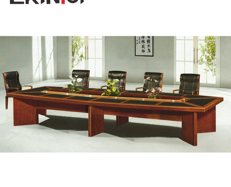 Crafted from high-quality, commercial-grade materials, the table features a scratch-resistant laminate or real-wood veneer surface that maintains its professional appearance under daily use. Reinforced edges and a sturdy steel or hardwood base provide long-term stability and a polished, executive aesthetic suitable for boardrooms, training centers, and collaborative environments.